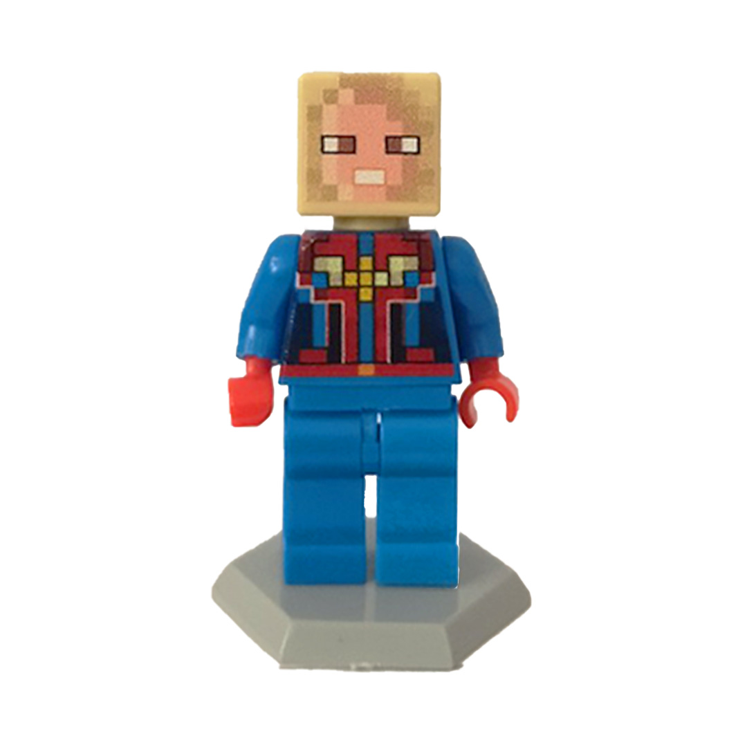 مینی فیگور لگو قهرمان هیرو با طراحی دقیق و جزئیات جذاب، توجه هر بینندهای را به خود جلب میکند. این فیگور کوچک دارای سر به شکل مکعب به رنگ قهوهای روشن است که طراحی پیکسلی آن، حس نوستالژیک بازیهای کامپیوتری کلاسیک را تداعی میکند. لباس آبی روشن با جزئیات قرمز و مشکی، دستهای قرمز و شلوار آبی، ظاهری جذاب و هماهنگ به این فیگور بخشیده است.