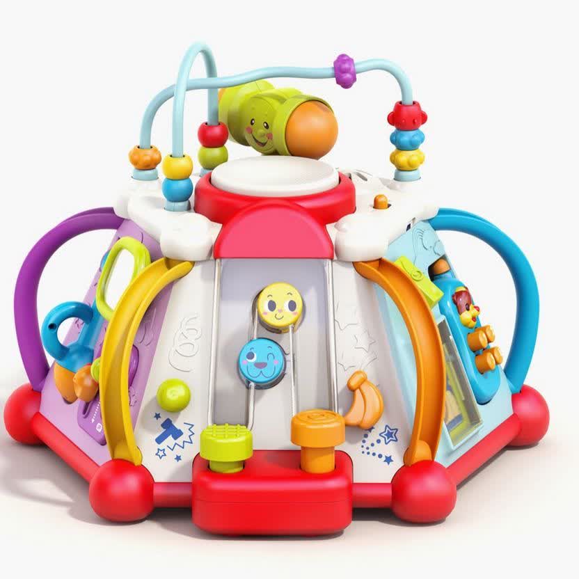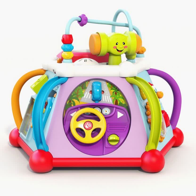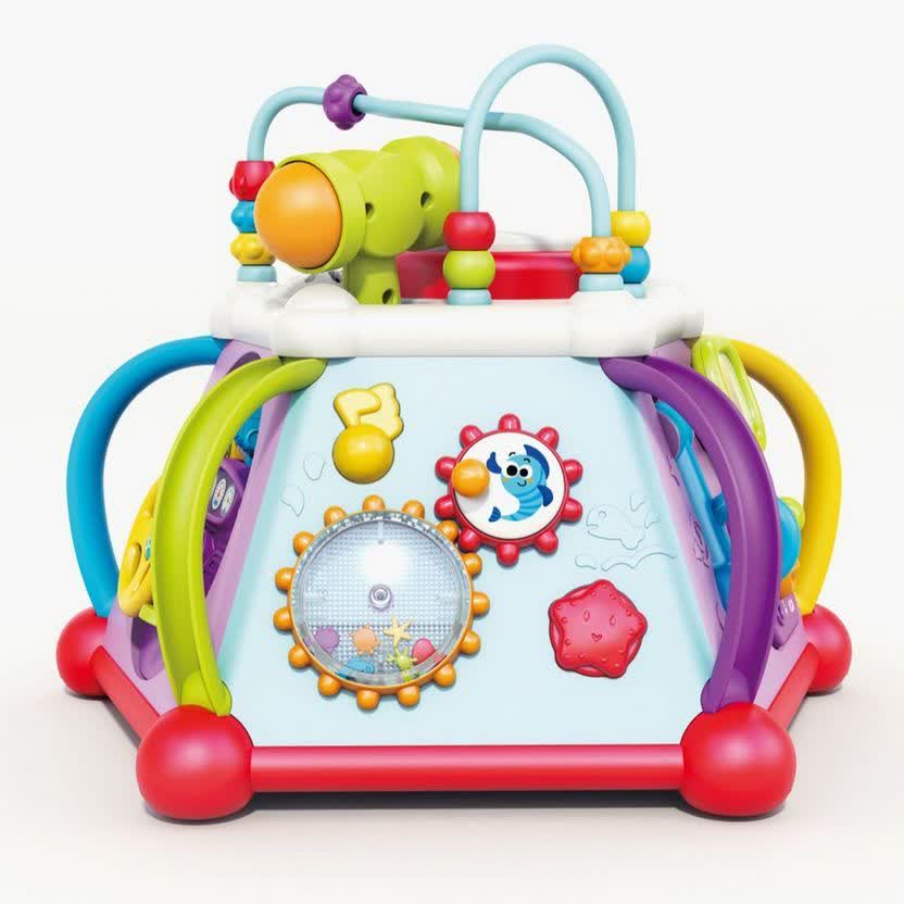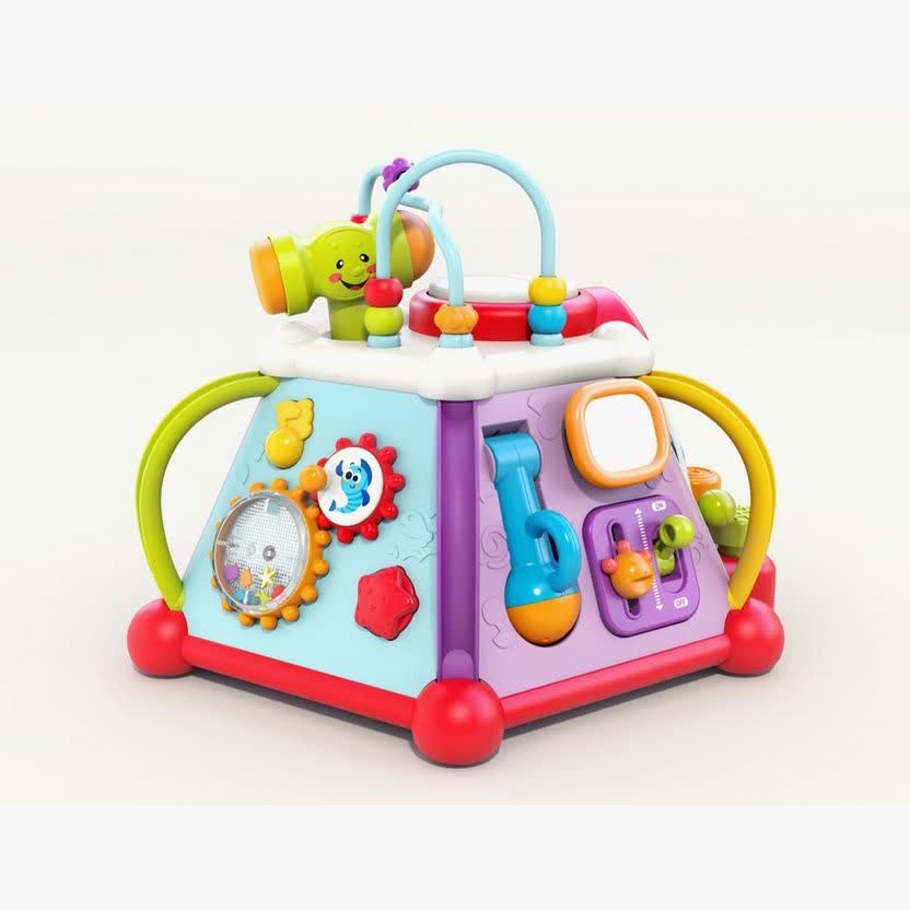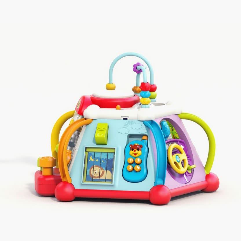 - ۱۵ فعالیت در ۶ وجه: این مکعب شامل ۱۵ بازی متنوع است، مثل چکش مهره، بازی چرخدنده، گوی مرواریدی، تلفن اسباببازی، میکروفون، درام نورانی و غیره.