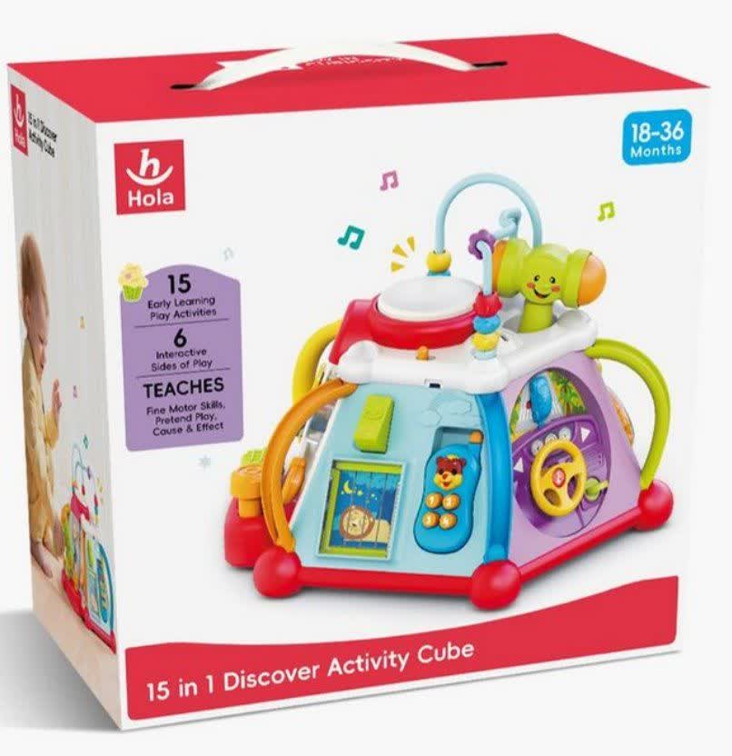 اسباب بازی هرم هوش هولی تویز (Hola Toys 15 in 1 Discover Activity Cube 806) یک اسباببازی آموزشی چندوجهی است که ۱۵ بازی مختلف را در شش سطح ارائه میدهد. این مکعب طراحی شده تا مهارتهای حرکتی، فکری، خلاقیت و تعامل اجتماعی را در کودکان نوپا تقویت کند. فعالیتهایی مانند چکش مهره، گوی مرواریدی، چرخدندهها، میکروفون، تلفن اسباببازی و درام همراه با نور و صدا، باعث میشوند کودک ساعتها درگیر بازی شود. این محصول از پلاستیک ایمن ساخته شده، با باتری کار میکند و برای رده سنی از حدود ۱۲ ماه تا ۳ سال توصیه میشود. با این مکعب هوش، کودک نه تنها سرگرم میشود بلکه مهارتهای مهم رشد شناختی خود را نیز توسعه میدهد.