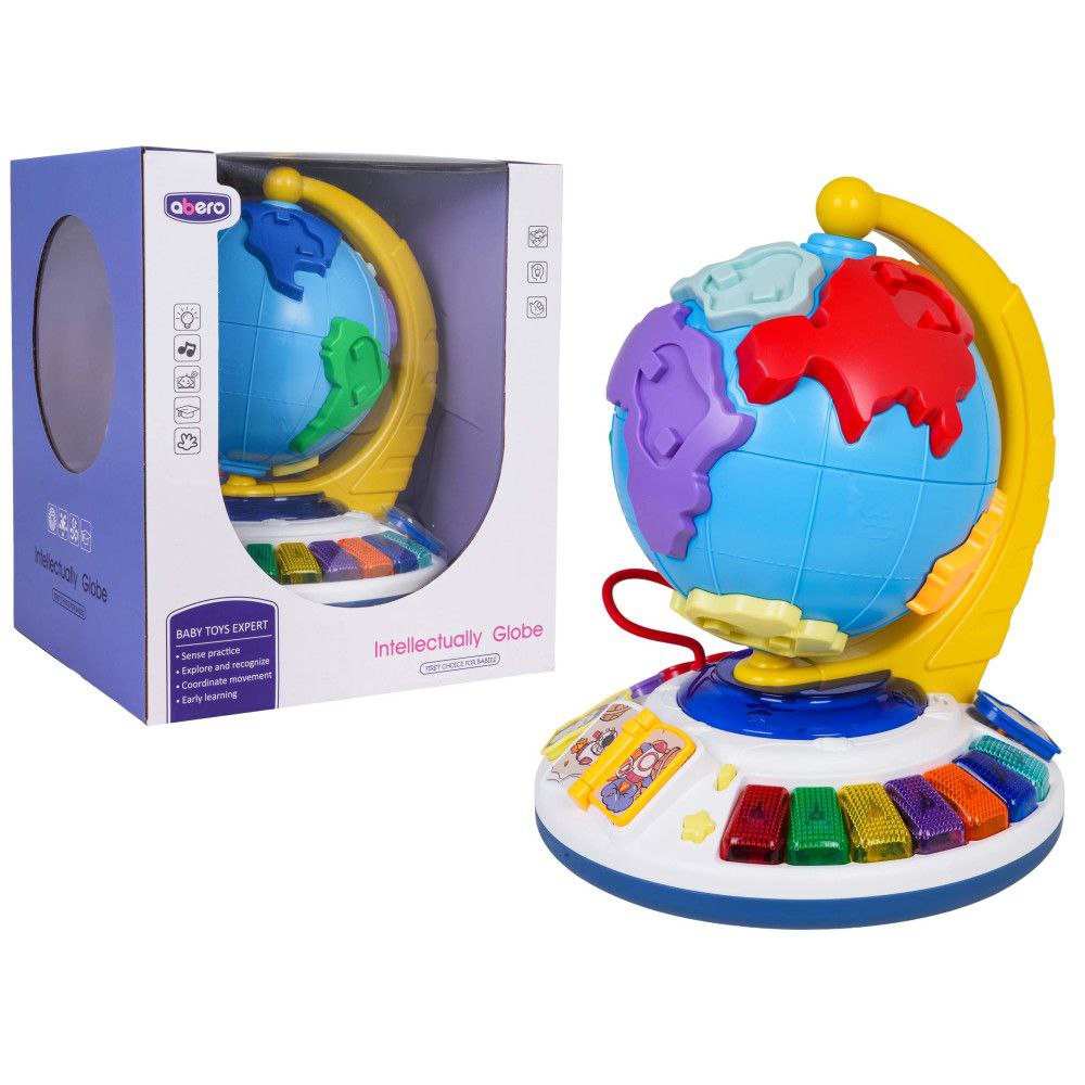 اسباب بازی کره زمین آموزشی موزیکال Abero Intellectually Globe QX-9301 یک اسباب بازی تعاملی است که به کودکان کمک میکند تا با دنیای جغرافیا، موسیقی و حیوانات آشنا شوند. کره زمین موزیکال شامل 7 بلوک رنگی قابل جدا شدن است که هر کدام نمایانگر یک قاره و حیوانات مخصوص آن منطقه هستند. با قرار دادن بلوکها در محلهای درست، کودکان نام قارهها و صداهای حیوانات را خواهند شنید، که این امر به تقویت حافظه و شنوایی کودک کمک میکند. این اسباب بازی همچنین دارای یک کیبورد رنگی با 4 حالت مختلف است: پیانو کلاسیک، موسیقی، بازی تخیلی و ضربه به حفره. هر کدام از این حالتها به کودکان این امکان را میدهند که مهارتهای موسیقیایی و هماهنگی دست و چشم خود را تقویت کنند.