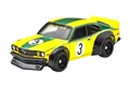 مدل Mazda RX3 مزدا آر ایکس 3 از سری Premium Car Culture برند Hot Wheels با الهام از خودروهای مسابقهای ژاپنی دهه 70 میلادی طراحی شده است. این مدل دارای ترکیب رنگ زرد و سبز با نوشتههای ژاپنی روی شیشه جلو و شماره مسابقهای 3 در طرفین است که حس و حال ماشینهای مسابقهای کلاسیک را به خوبی منتقل میکند.