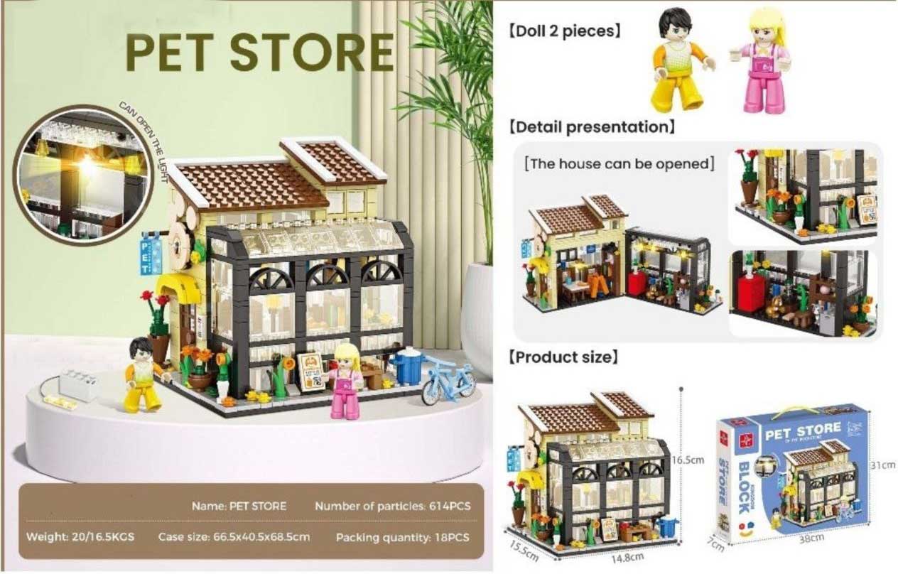 مجموعه Pet Store LX.A3803 یک لگوی شهرسازی خلاقانه است که امکان ساخت یک فروشگاه کامل حیوانات خانگی را با جزئیاتی دقیق و واقعی فراهم میکند. این مدل با 614 قطعه، گزینهای مناسب برای علاقهمندان به ساخت ساختمانهای کوچک شهری، مجموعههای خیابانی و مدلهای دارای اجزای داخلی است.