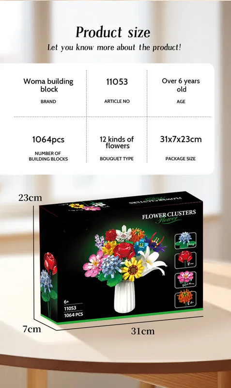 اگر مدلهایی با تعداد قطعه کمتر و رنگهای محدود دیدهاید، Flower Clusters 11053 با تعداد قطعهٔ بیشتر و تنوع گل بیشتر، ارزش بیشتری برای هزینه دارد. مدلهای مشابه معمولاً تعداد گل کمتر و رنگبندی سادهتر دارند. اگر دنبال ترکیبی از دکور زیبا، ساخت تفریحی و ماندگاری هستید، این مدل گزینه بهتری است.