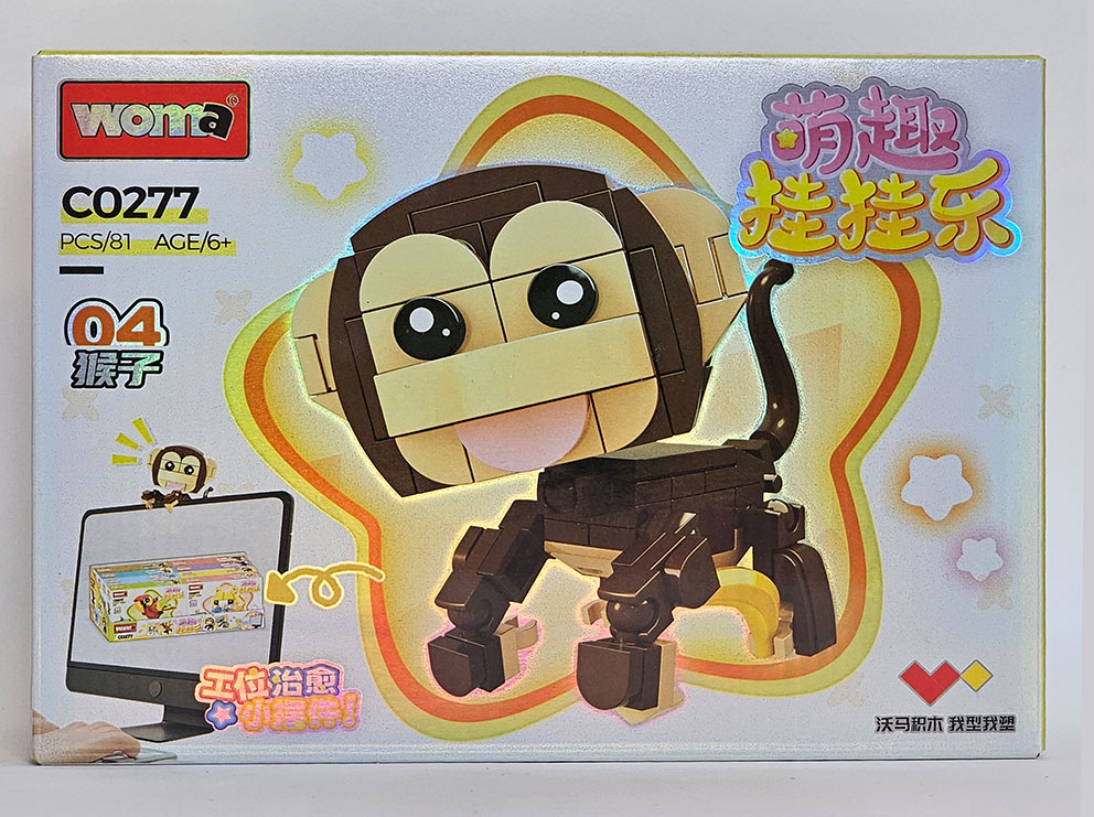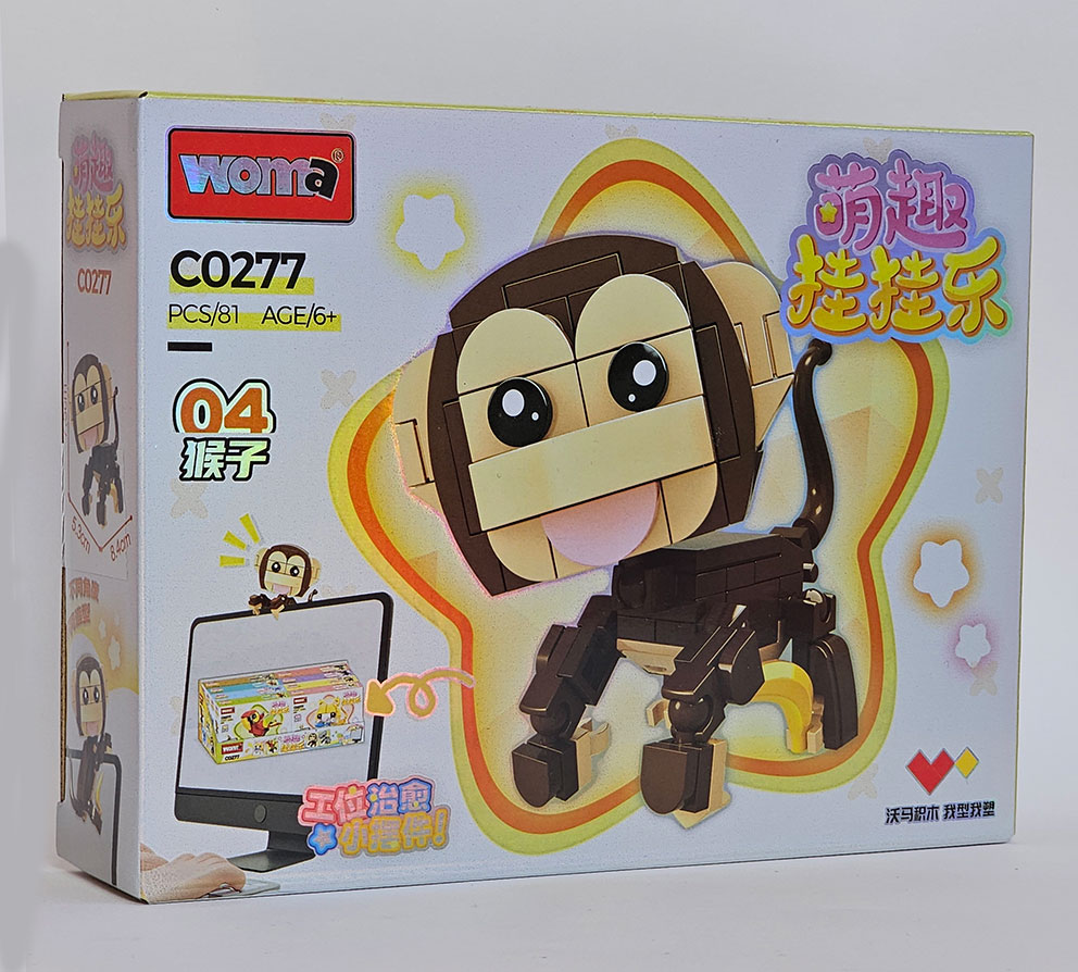 محصول لگو میمون Woma Building Blocks Monkey C0277-04 از سری حیوانات جنگلی برند Woma طراحی شده تا کودکان بتوانند از طریق بازی، با دنیای حیوانات آشنا شوند. این مجموعه دارای ۸۱ قطعه پلاستیکی مقاوم و باکیفیت است که به ساخت مدلی جذاب از یک میمون منتهی میشود. طراحی هوشمندانه قطعات باعث میشود مدل نهایی شباهت بالایی به یک میمون واقعی داشته باشد.