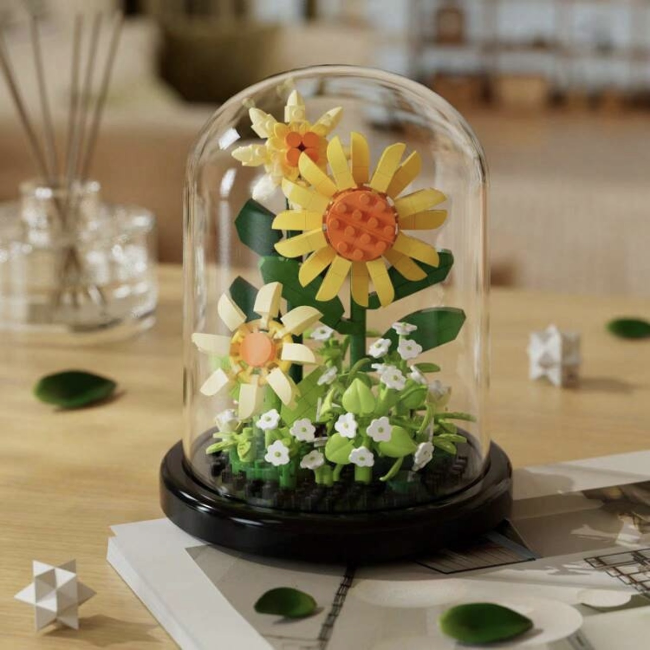 این لگو همراه با راهنمای تصویری عرضه می‌شود که ساخت گل و اتصال محفظه را مرحله به مرحله توضیح می‌دهد. ساخت ممکن است چند ساعت طول بکشد ولی نتیجهٔ آن ارزش دارد؛ وقتی گل کامل شد و داخل محفظه قرار گرفت، جلوه‌ای طبیعی و آرام‌بخش به فضا می‌بخشد. این مدل برای دکور میز تحریر، اتاق خواب، ویترین یا هر فضایی که به جزئیات طبیعی علاقه دارید مناسب است. توصیه می‌شود از نور طبیعی ملایم استفاده شود یا در کنار پنجره‌ای قرار گیرد تا نور طبیعی گل را برجسته کند بدون آنکه رنگ‌ها تحت تأثیر نور مستقیم آفتاب خراب شوند.