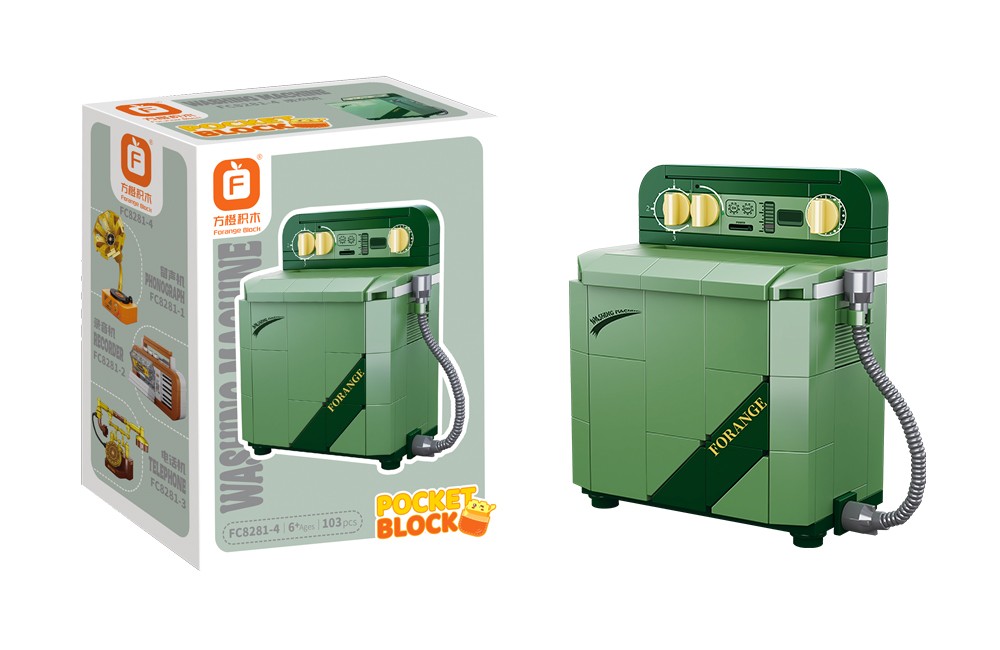 لگو ماشین لباسشویی کلاسیک Forange Block Retro Washing Machine FC8281-4 یکی از خاصترین مدلهای سری لوازم خانگی قدیمی Forange است که با جزئیات دقیق و مکانیزمهای حرکتی طراحی شده است.