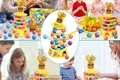 بازی فکری کیک غلتان Tumbling Cake یک سرگرمی شاد و هیجانانگیز برای تمام اعضای خانواده است که به کودکان و بزرگسالان فرصت میدهد تا با هم بازی کنند و لحظات خاطرهانگیزی را تجربه کنند. قوانین ساده و جذاب این بازی، برای همه سنین مناسب است. در این بازی، ابتدا 9 توپ رنگی روی پایهای قرار داده شده و با قرار دادن حلقههای بالاتر، 4 لایه ساخته میشود. بازیکنان به نوبت فلش را میچرخانند و با استفاده از چوب پلاستیکی، باید توپها را از تورت خارج کنند. اولین بازیکنی که جری را به زمین بیندازد، بازنده بازی خواهد بود! این بازی مهارتی به تقویت هماهنگی دست و چشم و تمرکز کمک میکند.