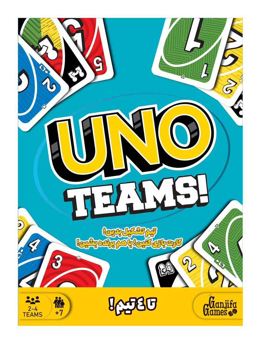 بازی فکری اونو تیمی Uno Teams بازطراحی خلاقانهای از یکی از انفرادیترین بازیهای کارتی دنیاست. در این نسخه، بازیکنان دیگر تنها برای خودشان بازی نمیکنند، بلکه باید با همتیمیشان هماهنگ شوند تا مسیر پیروزی را هموار کنند.